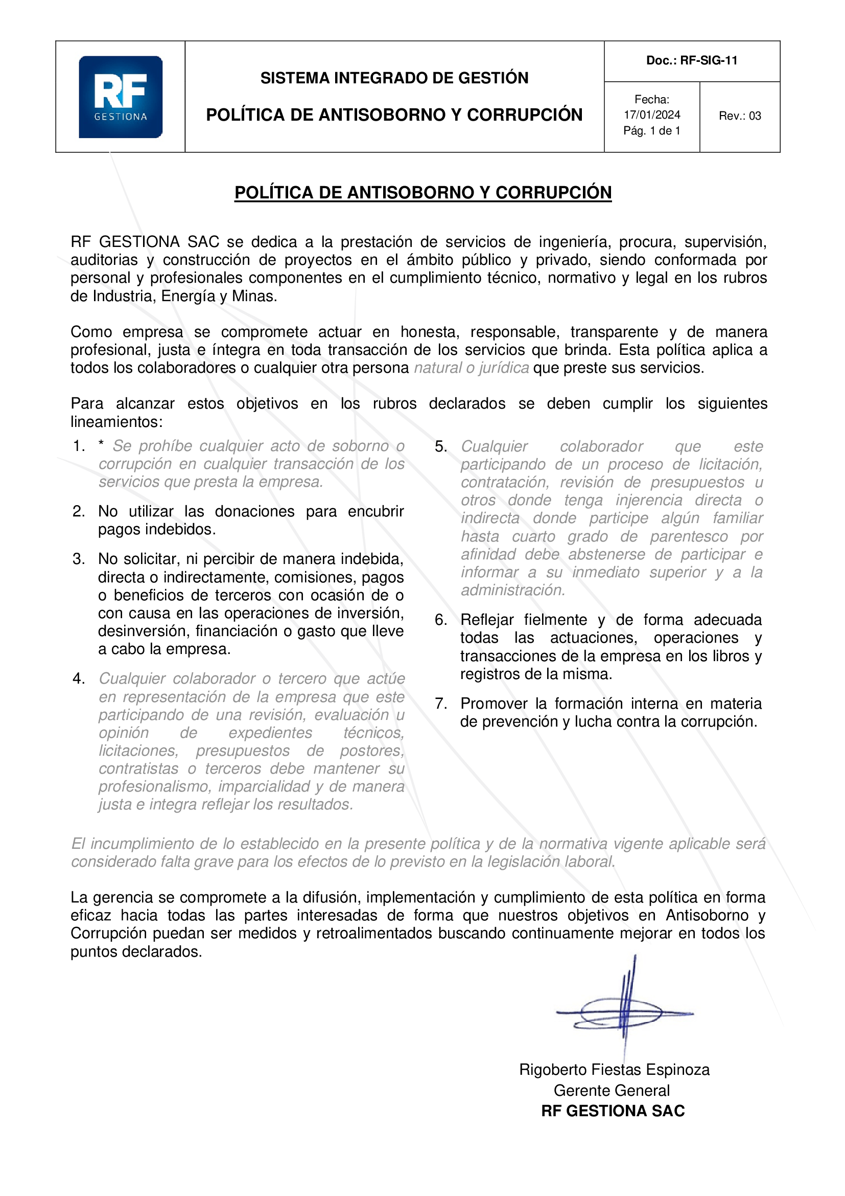 Cumplir lo acordado en tiempo, calidad y precio de acuerdo a los requisitos del cliente.